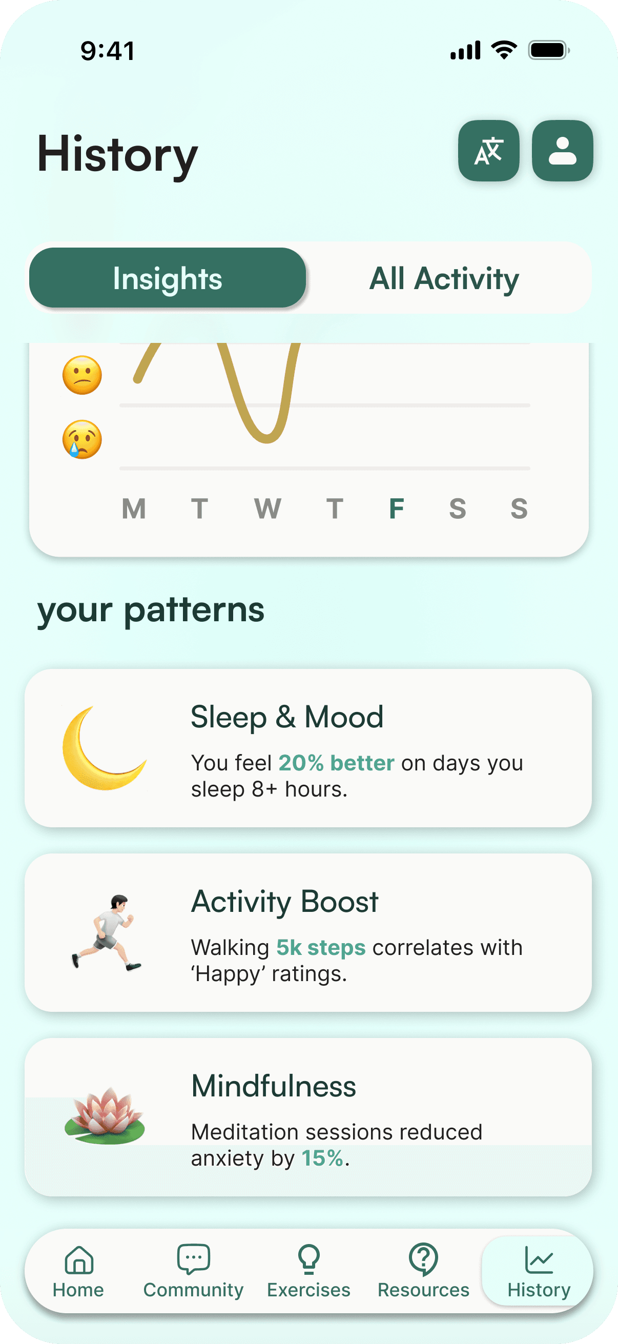 Weekly mood patterns that encourage consistency without pressure.