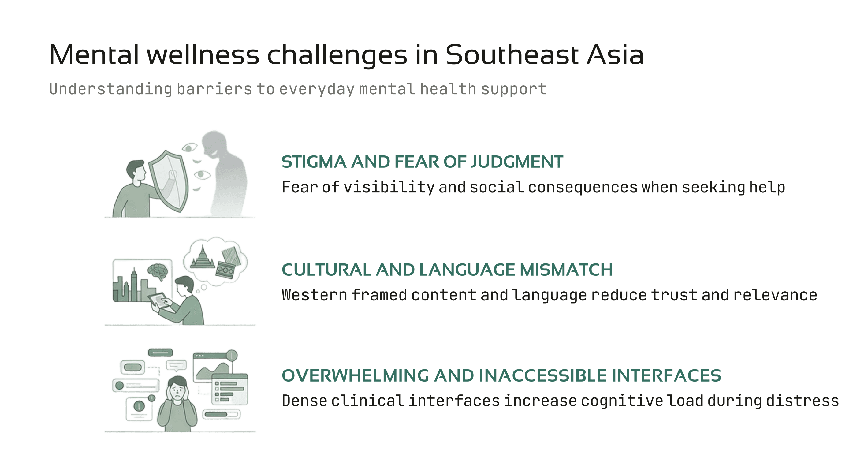 Found Western mental health apps lacked cultural tone and localization for SEA.